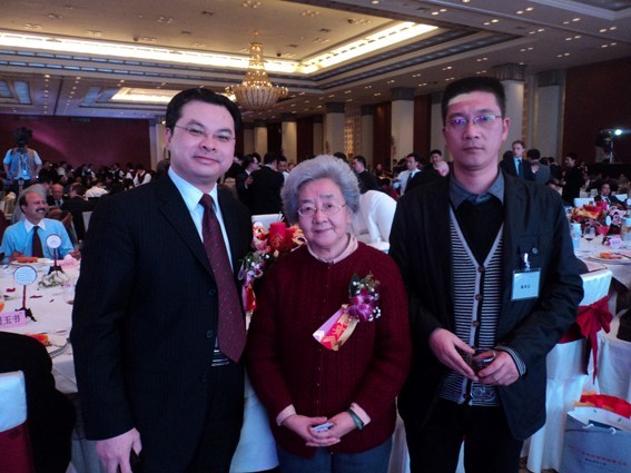 “富贵红”品牌创始人、董事长徐少东(左)与广东省商业联合会会长巫开立(中)合影