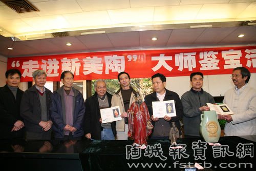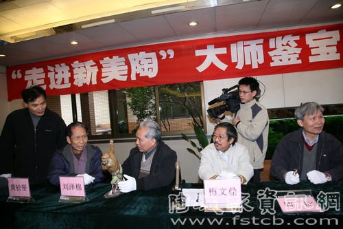 1月15日早上,“走进新美陶”系列活动收官,其中重头戏“大师鉴宝活动”压轴出场,刘泽棉、梅文鼎、黄松坚、刘炳、霍家荣等5位国家级大师免费为市民鉴宝。现场共一百多市民抱着各自的宝物到现场请大师进行鉴定,大师们对市民们抱来的作品进行细致的鉴别,现在参加鉴别的作品有仿冒的,有价值连城的,也有大师十几年前的,让大师和收藏者们开了不小的眼界。