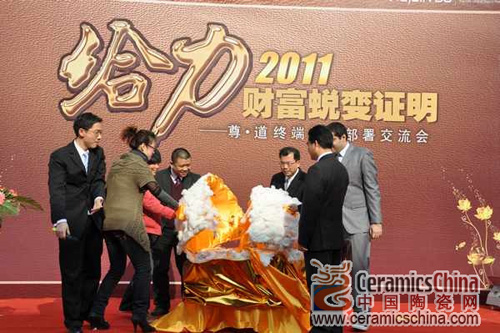 爆竹声声,彩蝶飞舞,1月15日,“给力2011财富蜕变证明——尊•道终端战略部署交流会”在佛山瓷海国际尊道金宫隆重举行。尊道建材有限公司董事会全体成员携国内外200多名经销商参与盛会,见证了尊道的华丽蜕变。