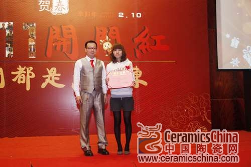 当天,正忙于西班牙瓦伦西亚瓷砖及卫浴展的亚洲陶瓷控股总裁蒲鼎新专程从西班牙搭乘飞机赶回佛山,百忙中给全体员工送上喜庆开年利是。晚上六点,晚会于亚洲陶瓷蒲鼎新总裁激情洋溢的致辞中拉开序幕。在讲话中,他充分肯定了全体同仁对公司发展做出的巨大努力,并鼓励大家以更大的热忱和激情投入到未来的工作中,实现更大梦想。开年晚宴伴随着轻松愉悦的氛围,为展现路易•华伦天奴人积极向上,团结奋进的企业文化,提升企业凝聚力,全面展示企业形象,在年前每位员工积极筹划,为活动献言献策,利用空余时间排练节目,将自己对公司的热忱和同事的友爱奉献到节目中。动感奔放的《第一天》女生合唱迅速带动现场气氛,轻快跳跃的节奏体现出员工的活力和青春气息;游击队之歌《毛委员和我们在一起》让岁月重回战争年代,雄浑嘹亮的歌声回荡在宴会厅,印证团结向上的奋进精神;劲爆热辣的舞蹈吸引眼球,乐器独奏、独唱、小品,精彩节目一个紧接一个,宴客厅掌声、欢呼声不断。而在节目有条不紊进行的同时更是穿插了一等奖、二等奖、三等奖和特等奖的抽奖环节,把火热进行的活动更是推向了一个个高潮。