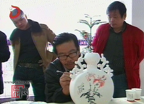 [陕西艺术学院副院长、中国美术家协会会员:郑培熙:留白就是一种艺术,你们这边的优势就是这个特别白这个陶瓷,颜色特别白,我们绘画也是用纸,用白纸,中国画也是在白的上面,可以表现出很丰富的东西。]