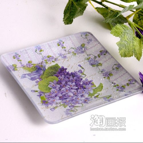 紫丁香花小号方形果盘贴花银箔零食碟餐碟水果碟子