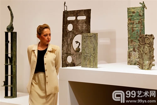 Isabelle Maeght在米罗-胡安雕塑作品前