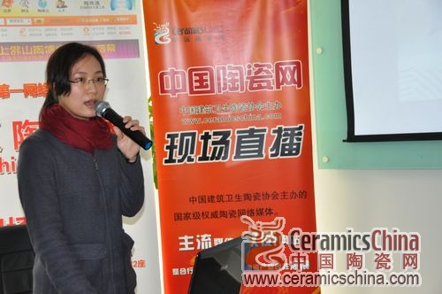 ICC陶瓷市场部经理吴凯怡女士正在对ICC半年的发展情况进行简单阐述