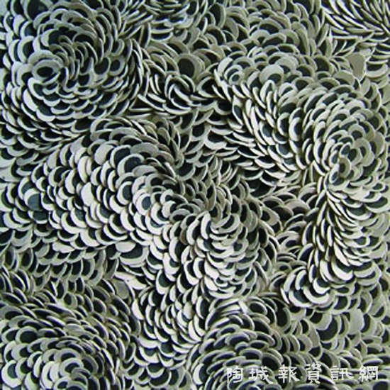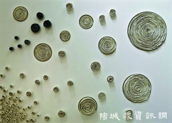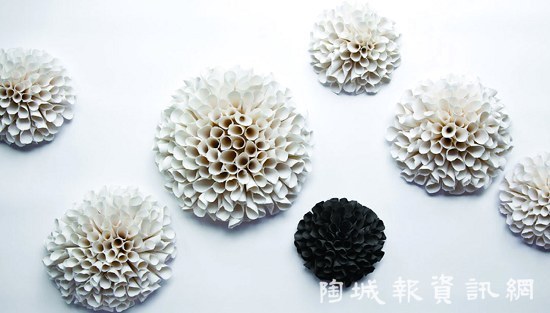 为鼓励陶艺创意,伦敦陶瓷艺术节特别颁发了一个最具创意奖,得奖者是来自英国的Fenella Elms,她的获奖作品是由众多小块陶瓷拼成的图案,远看恰似盛放的牡丹,又像片片龙鳞,人们很难想到它的材料是陶瓷(参考图1)。除此之外,展览中有不少赏心悦目和创意奇特的作品,例如:来自巴西的VALERIA NASCIMENTO的作品,娇小玲珑的陶花为平常无奇的墙壁增添了无限生机。陶花均以白色为主,给人简约、干净、舒服的感觉。(参考图2,3)