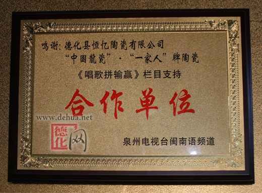德化县恒忆陶瓷有限公司“中国龙瓷、一家人”陶瓷成为泉州电视台闽南语频道《唱歌拼输赢》栏目支持合作单位。
