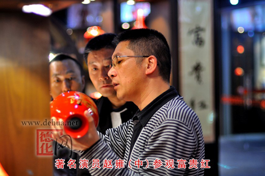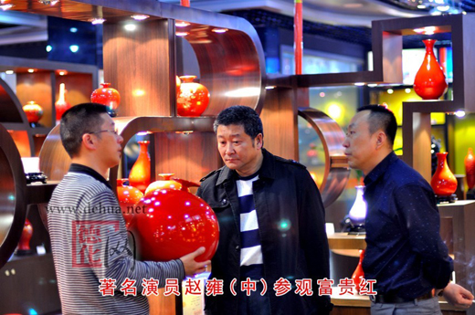 身临其境地参观富贵红陶瓷艺术品后,赵雍由衷地感叹百闻不如一见,对于富贵红艺术品珍爱不已。他告诉富贵红徐总监说,他将会将此行的美好体验与演艺界的朋友一同分享。