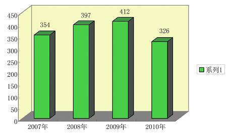 2007~2010年淄博产区陶瓷生产线示意图(单位:条)