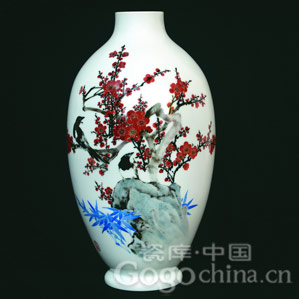 陶瓷艺术·丁华汉大师手绘梅开五福花瓶