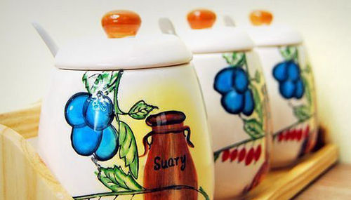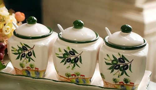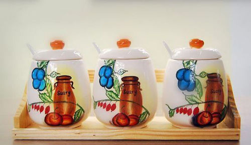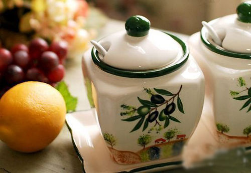 清风橄榄 水果彩绘陶瓷调味罐四件套