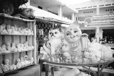 陶瓷村里没什么人,有的店没开门,开了的就把自己的产品放在门口卖,我问司机平时都是这么冷清吗?他说因为是周末,所以没什么人。陶瓷村有一个市场,里面一个商铺挨着一个商铺,像北京的天意市场,各种各样的陶瓷制品,餐具、茶具、小动物造型的摆件,还有陶瓷的胡志明肖像。花样虽然繁多,但品质看起来还有些原始和粗糙,感觉像是中国上世纪80年代的东西——色彩艳丽、造型上都不那么精致,但别有一番乡土气息。