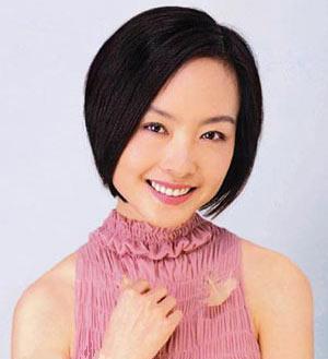 发型1——将蓬松的烫发约束起来,修剪成比较短的刘海后稍偏分,刘海应高于眉毛,梳理整齐,职业简洁干练。