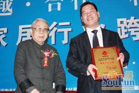 图为鹰牌陶瓷等企业获得“十大陶瓷品牌”荣誉