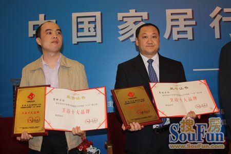 图为箭牌卫浴与惠达卫浴获得卫浴十大品牌称号