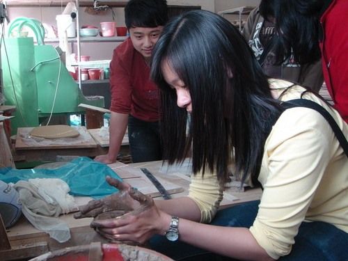 学生们深入地了解了德化陶瓷的历史,被德化陶瓷文化独特的韵味所吸引。在德化华达陶瓷有限公司参观过程中,华达陶瓷负责人为同学们详细介绍了整个生产工艺,个别同学在陶瓷技师的指导下体验了转盘上的艺术。