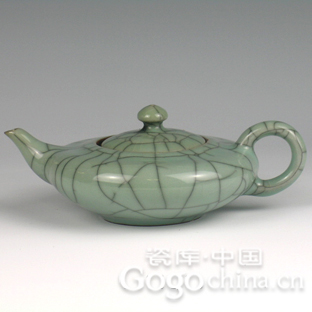 龙泉青瓷瓷器—哥窑青瓷全手工拉胚扁茶壶