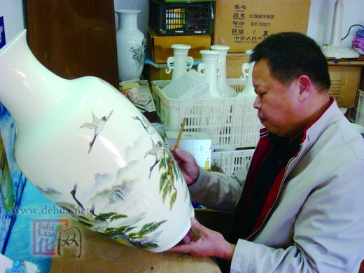 今年49岁的刘彦斌出生在一个艺术之家,他的母亲是我县瓷雕泰斗邱双炯的亲侄女邱子音。邱子音1958年毕业于江西景德镇陶瓷学院中专部美术专业粉彩班,是德化第二瓷厂彩画师,彩画车间技术员,瓷都德化陶瓷装饰艺术界著名女艺人,曾经被誉为当时万紫千红瓷苑中的“琼葩”。