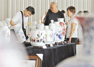 近日,在武汉国际会展中心“中国风”名优陶瓷工艺品展示会上,不少市民前来观赏选购。有关资料显示,市民阶层收藏热的兴起一定程度上影响和推动了陶瓷工艺品的革新和发展。(记者 傅克强