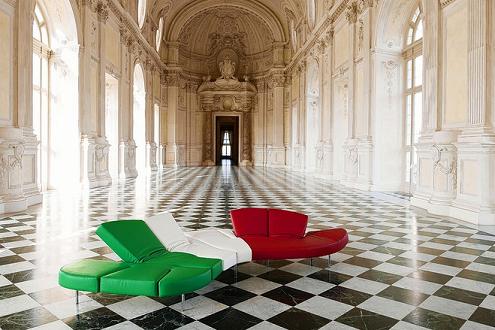 Edra的国旗沙发。今年,Edra为庆祝意大利统一150周年特地重新推出了这款与意大利 国旗同色的组合沙发。