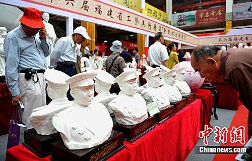 4月29日,用陶瓷制作的十大元帅亮相此间正在福建莆田举办的第六届海峡工艺品博览会,吸引许多参观者的眼球。