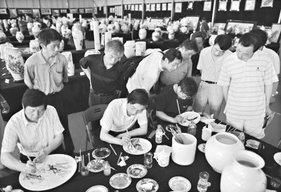 昨日,在武汉国际会展中心广场“当代名家陶瓷鉴赏会”上,景德镇陶瓷书画艺术大师们现场诠释了当代瓷器创作工艺、制作流程以及瓷器纹饰鉴定等,吸引了众多参观者。此次举办的“首届中华风名优陶瓷工艺品现场绘画作品展”将持续到12日。记者 邱焰 摄