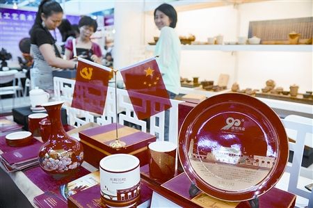 在文博会期间,一批庆祝中国共产党成立九十周年的纪念陶瓷精彩呈现,受到文化艺术界的关注,成为文博会亮点。记者今天在非物质文化遗产馆看到了我省文化产业项目“湖湘名品工程”携手红色官窑醴陵联手创作推出的精美陶瓷。据参展方介绍,这是建党瓷·光辉历程系列首次亮相文博会。