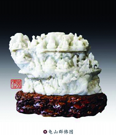 据悉,获奖玉雕作品《龟山群佛》,是全国高级工艺美术师陈健先生率众多苏作玉雕大师悉心打造的,历时三年才完成这件呕心沥血之作。这件作品重达178公斤,是由和田白玉精雕而成。玉质细腻油润,白若凝脂,营造出超凡脱俗、冰清玉洁的无上清凉境界。(记者 江婕云 孔小平)