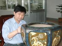 为弘扬民间工艺作出历史贡献。在从事宋代已著称于世,与紫砂,均釉并称宜兴陶瓷“中国民间三绝”得均陶堆花艺术创作中,实现了从传统“平贴法”到“半浮雕”“立体浮雕”堆贴法的创作。代表作无锡锡惠公园浮堆九龙壁被誉为“中国四大九龙壁之一”,堆花“蟠龙陶台”在中南海紫光阁收藏陈设。创作中借鉴民间姊妹艺术表现形式,首开堆花艺术品时代先河。继而带领和培养一大批专技人员把堆花运用在紫砂陶艺创作上,为宜兴陶都作出了重大贡献。