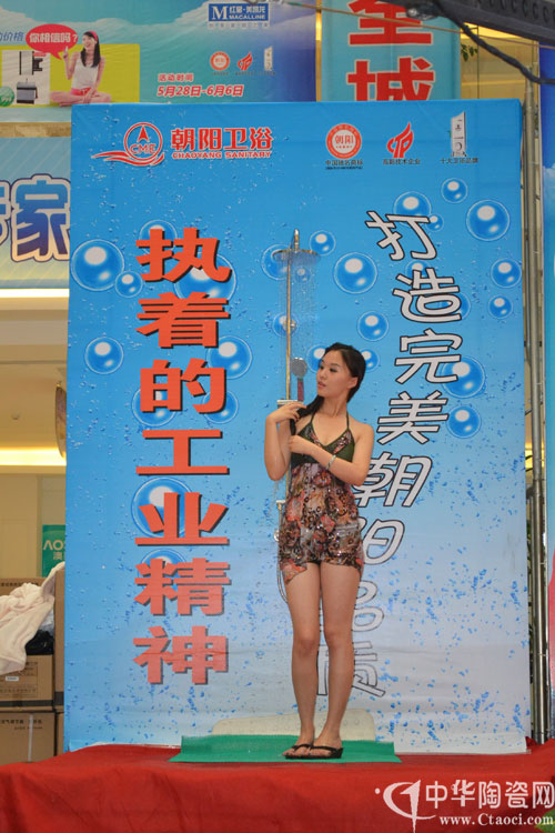在促销现场上,从红星美凯龙入口一直到朝阳卫浴店,几百米的走道全部用光鲜的红地毯铺就,呈现出一派喜气的画面,给顾客带来了贵宾礼遇的体验。开场的劲歌热舞、活跃手提琴表演、产品展示与专业的模特走秀,将现场活动气氛渲染得愈加浓烈;而美女俊男的现场淋浴,更将现场气氛推向了高潮。现场人潮涌动,火爆非凡,着实让人感受到朝阳卫浴大品牌的独特魅力。