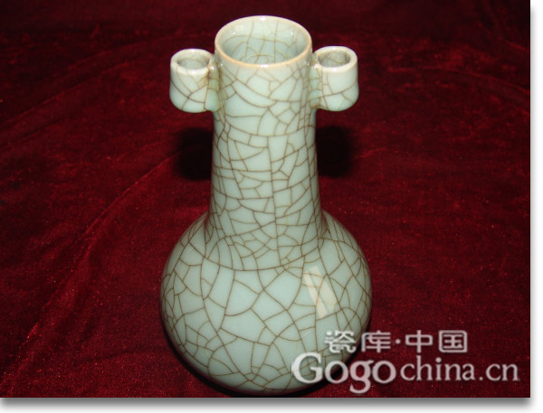 图:龙泉官窑青瓷粉青开片贯耳艺术花瓶