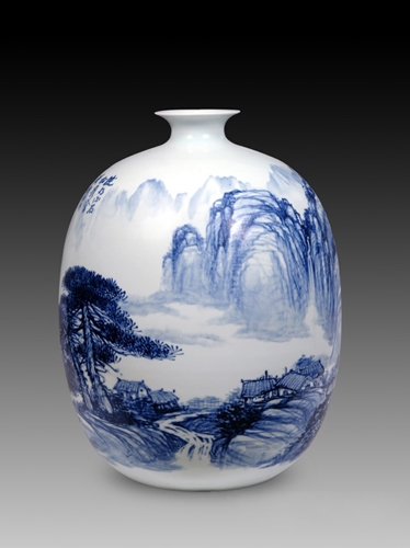从1982年开始,为改变传统绘画技法,受高温颜色釉窑变景象万千之启示,从山水画着手,开扩泼墨彩研究,通过墨彩的自然晕散与流动来表现自然界变化莫测的物象和意境。按唐人王恰“以其痕迹,为山为石”之说,结构山石林泉,追求天趣,展现其诗情画意。将一些创新的特殊技法移植到陶瓷绘画中,体现了对陶瓷美术创作的新定位及新思考。