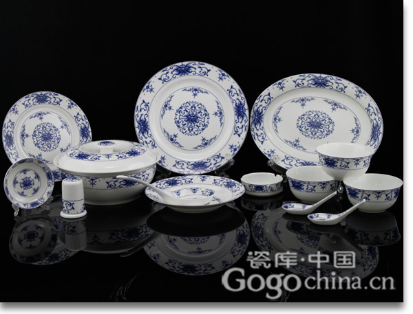 图:会议礼品·吉祥相伴景德镇青花釉中彩骨瓷56头餐具碗盘