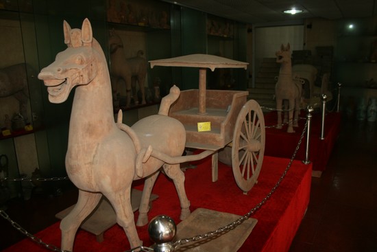 成都岳汉古器博物馆重点展示了新津的高温红陶、灰陶以及各类汉代砖棺。从汉陶的种类看,分为人物、动物、器具几类,人物有武士、官吏、农民、乐舞艺人等,动物有马、牛、羊、猪、狗等,器具有车马、农具、摇钱树等。这些民间雕塑,造型简洁,富有神韵,极具生活趣味。