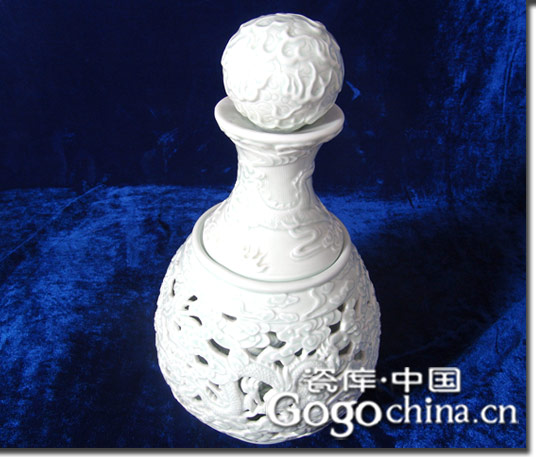 图:龙腾玉壶春镂空雕花酒瓶