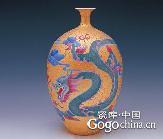 图:二龙戏珠釉下五彩陶瓷葡萄花瓶