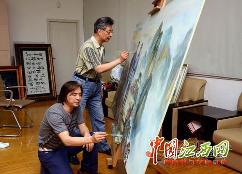中国江西网7月29日南昌讯 近日,由中国工艺美术大师,景德镇市陶瓷研究所所长赖德全和上海实力派画家杨秋宝、奚文渊联袂创作的大型重大历史题材瓷板画《红色记忆》顺利完成。