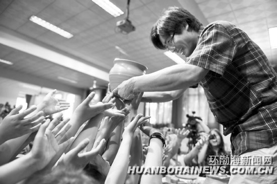 图为唐山学院艺术陶艺工作室主任程红璞现场为学生演示陶瓷制作。
