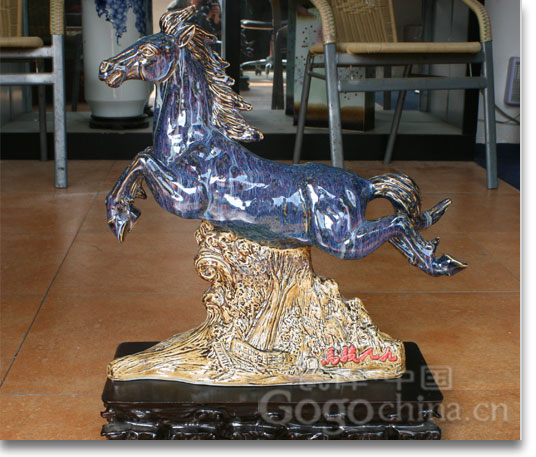 图:高档钧窑瓷器九九骏马钧瓷窑变瓷雕_陶瓷艺术大师作品