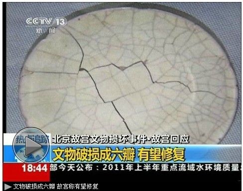 故宫古器物部表示,这次损坏的宋代哥窑破损成6瓣,虽然情况复杂,但故宫有能力修复。