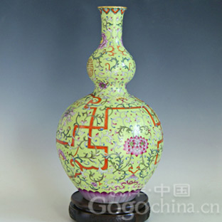 图:清乾隆万寿连延粉(洋)彩葫芦瓶