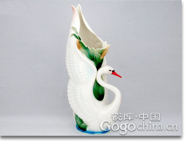 图1:商务礼品·珐琅彩天鹅展翅艺术花瓶
