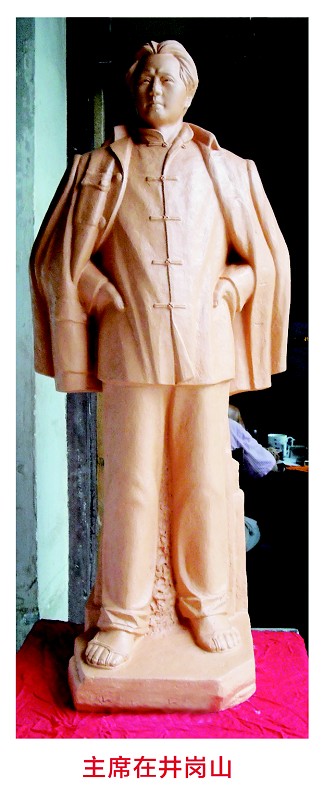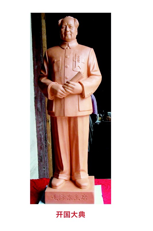 走进雍起林的工作室大门,陈列室里摆放着大大小小的全是毛主席像,大概有三十多尊。雍老自退休后就开了这个工作室,专门陶塑毛主席像。雍起林说:“特殊的生活经历和生活背景,让我对毛主席有着很深的感情,而历经新旧两个社会,更是让我深爱着这片土地。我一直想着要创作一些作品来表达自己对祖国的情感,对毛主席的热爱。而用陶艺塑造毛主席的形象是我能想到的,自己力所能及的,也是最有意义的方式。”