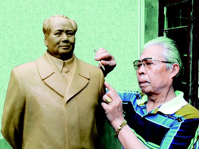 走进中国陶瓷艺术大师雍起林的院子,笔者看到两个用简易的石棉瓦和砖块砌成的空间里,堆满了正在晾干准备烧制的毛主席陶瓷像。雍起林指着院里高高的火炉告诉笔者:“这就是烧制瓷像的火炉。一般情况下,烧制一个陶像要经过二十多个小时,我都要全程守候。” 钟情雕塑毛主席像