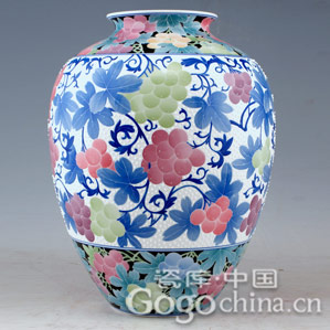 图:袁述凡手绘精品釉下五彩缠枝葡萄太白尊
