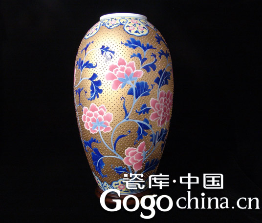 图:袁述凡大师手绘釉下五彩缠枝富贵花艺术花瓶