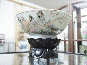 人物是民国瓷器上表现最为广泛的题材之一,见有神话人物、历史人物、戏曲小说人物、仕女婴戏等。多承袭传统并赋予鲜明的时代特征,最为典型的是历史人物与仕女人物。民国时期,特别是抗战军兴,弘扬民族气节的历史人物如苏武牧羊、励志发奋的岳母刺字、闻鸡起舞、报国杀敌的木兰从军等人物大量出现,对瓷器传统纹饰产生了不小的冲击。独有新意的人物纹饰是民国初期大量出现的时装仕女及具有时代风格的婴戏图,前者多着新式时装,上身为高领窄袖锦衣,下身为长裙或八分裤。后者多手执民国时的五色旗帜。不仅拓宽了人物题材,也反映了时代变迁对彩瓷艺人的影响及市民阶层的审美意趣。