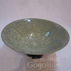图:龙泉青瓷哥窑米黄釉开片斗笠碗