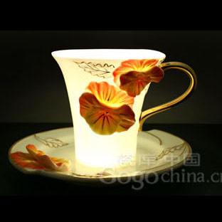图:浪漫三色堇珐琅彩炫金咖啡杯