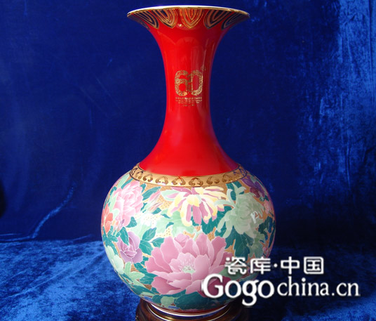 图:瓷器礼品·庆建国60周年瓷器繁荣昌盛天球瓶