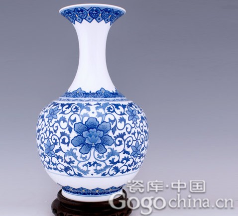 图:青花缠枝牡丹花瓶
